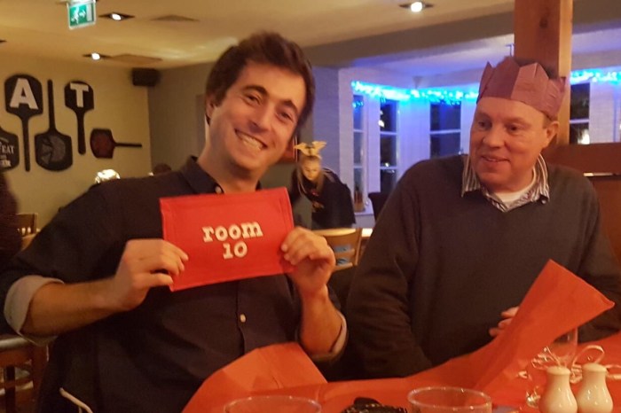 We had our room 10 Christmas dinner last night, and presented Joël with a goodbye gift – Ailsa made a little souvenir version of our music stand banners. Cute!
