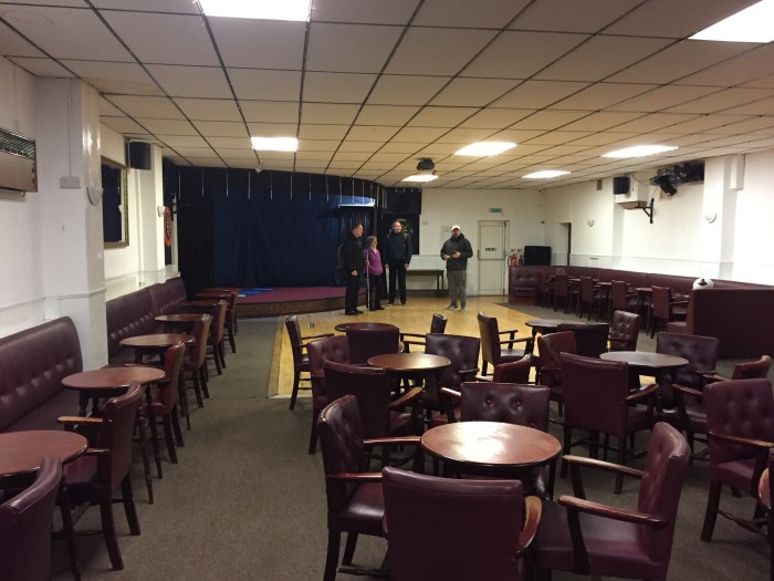 Lovely Rich, the bassist, brought along some extra equipment to help me with the vocals, so I’ll be actually able to hear myself – what a novelty!