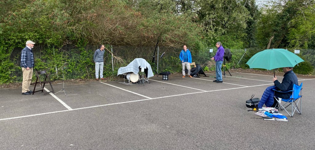 I’m back, singing with (some of) the band! Only six people outdoors, so far. But we’re getting there! This is the first time I’d sung with them in nearly eight months, so as the the song goes “I found a thrill…”